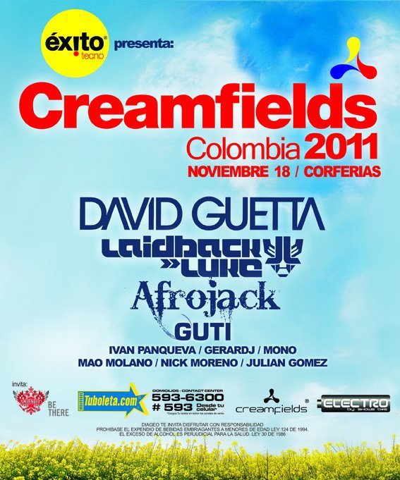 Creamfields 2011 viernes 18 de Noviembre en Bogota (David Guetta, Laidback Luke, Afrojack & Guti)