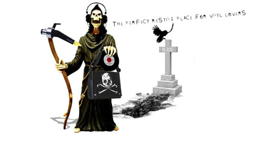 Para quienes son más que fanáticos del vinilo, y quieren dejar bien en claro esa postura incluso desde el más allá, esta propuesta les vendrá de maravillas.